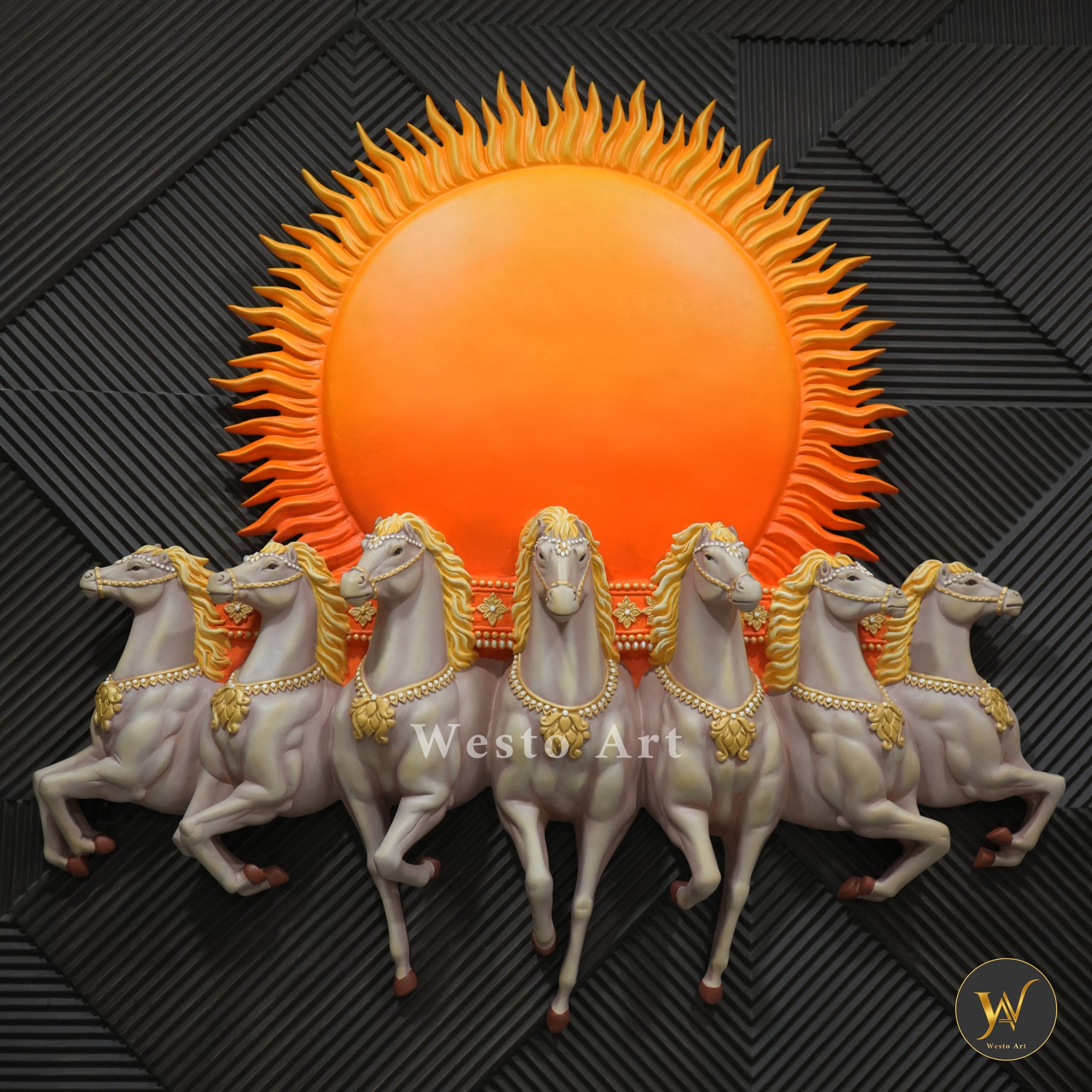 Seven Horses with Rising Sun Wall Mural 4x4 ft | Luxury Design Decor