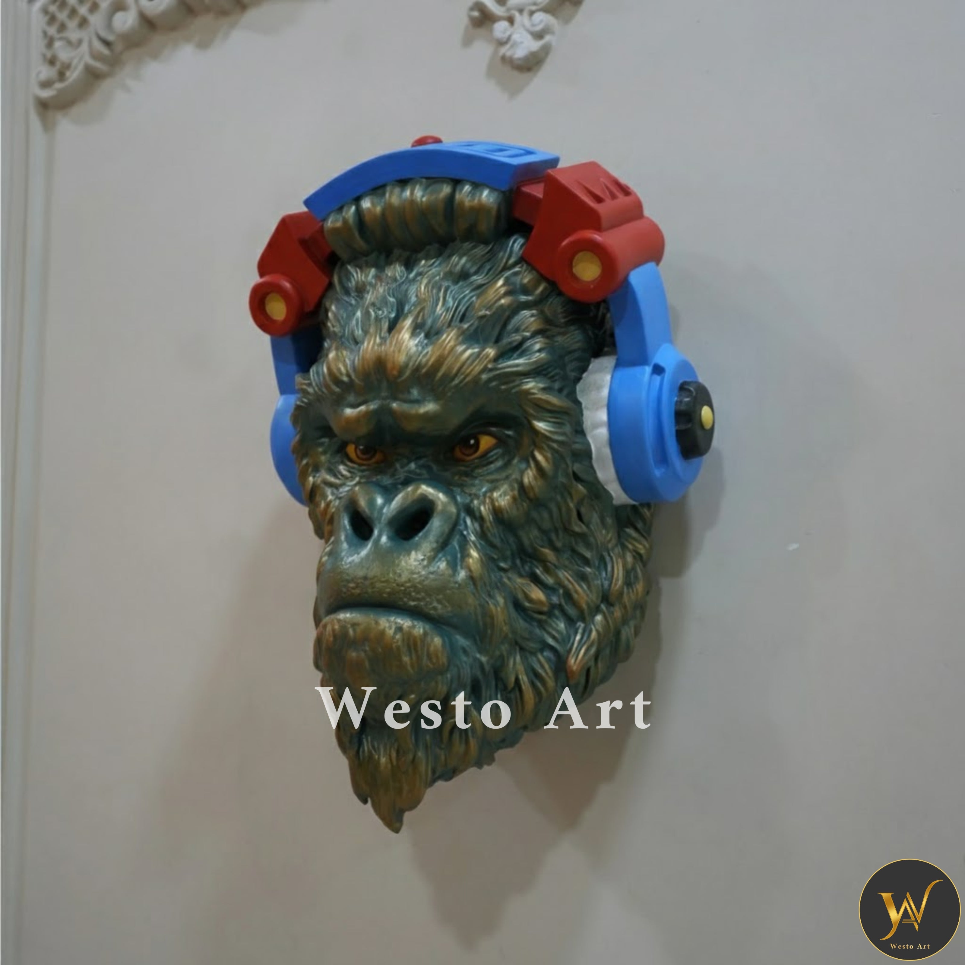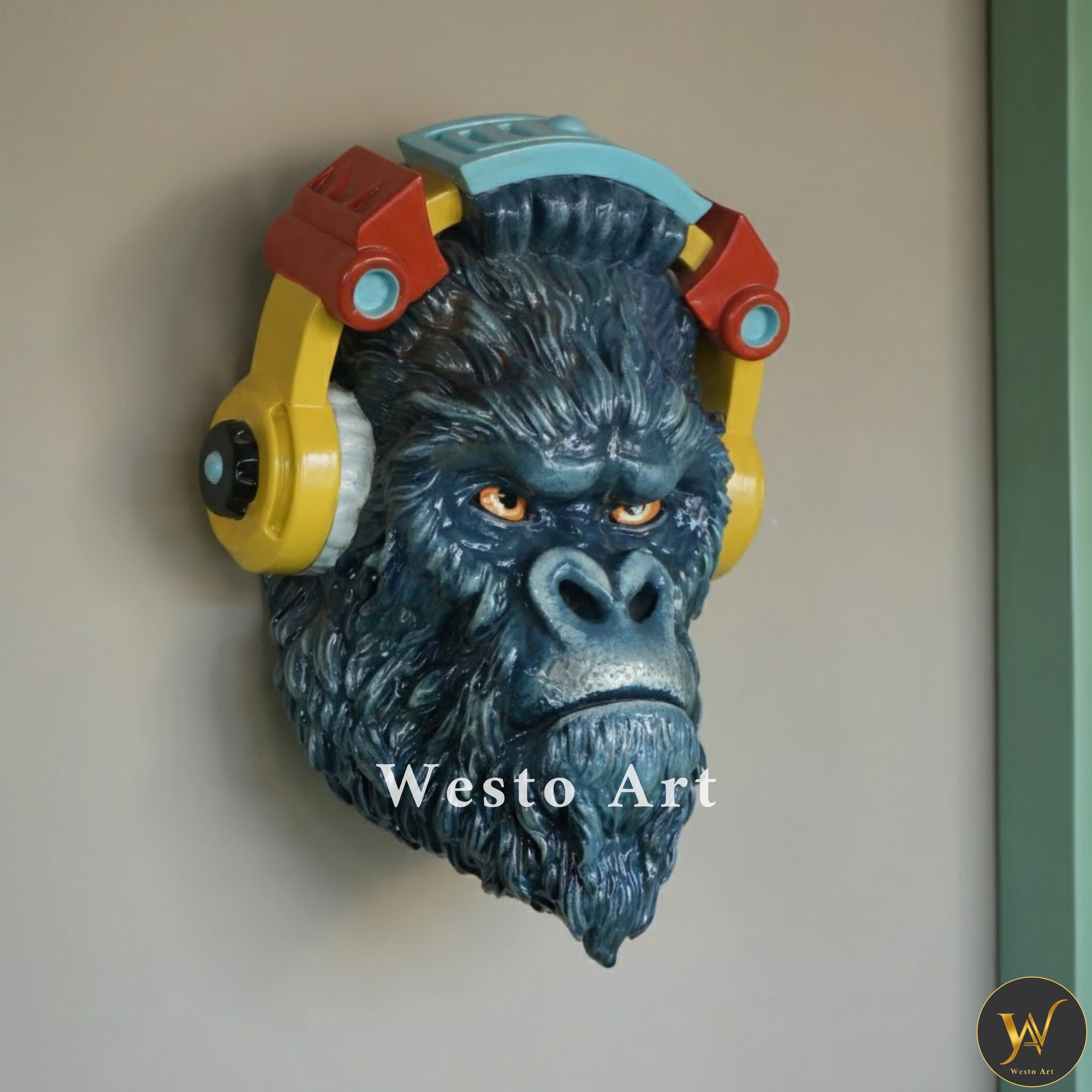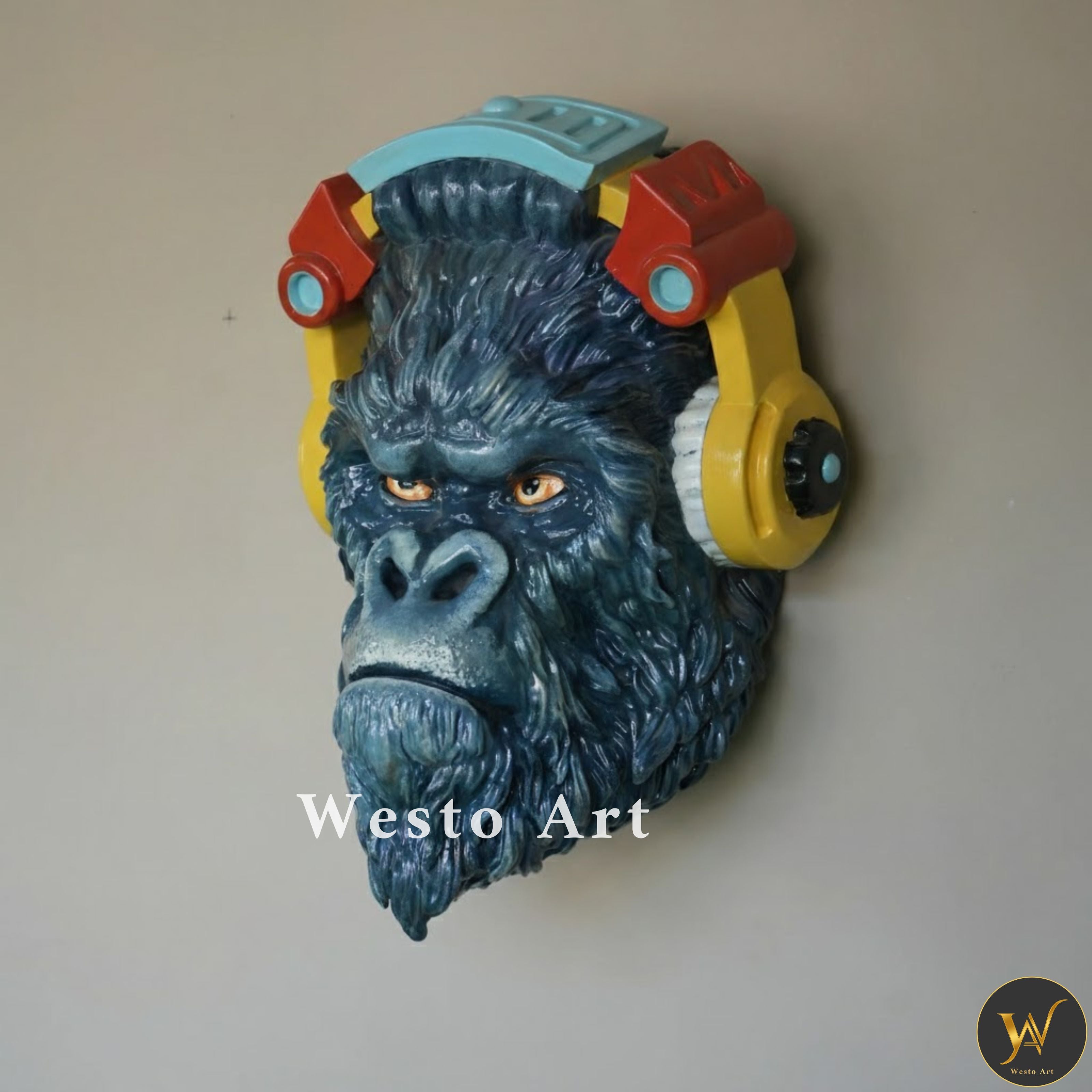 Funky Gorilla Wall Art with Headphones – 1.5x1.5 ft | Modern Music-Inspired Décor