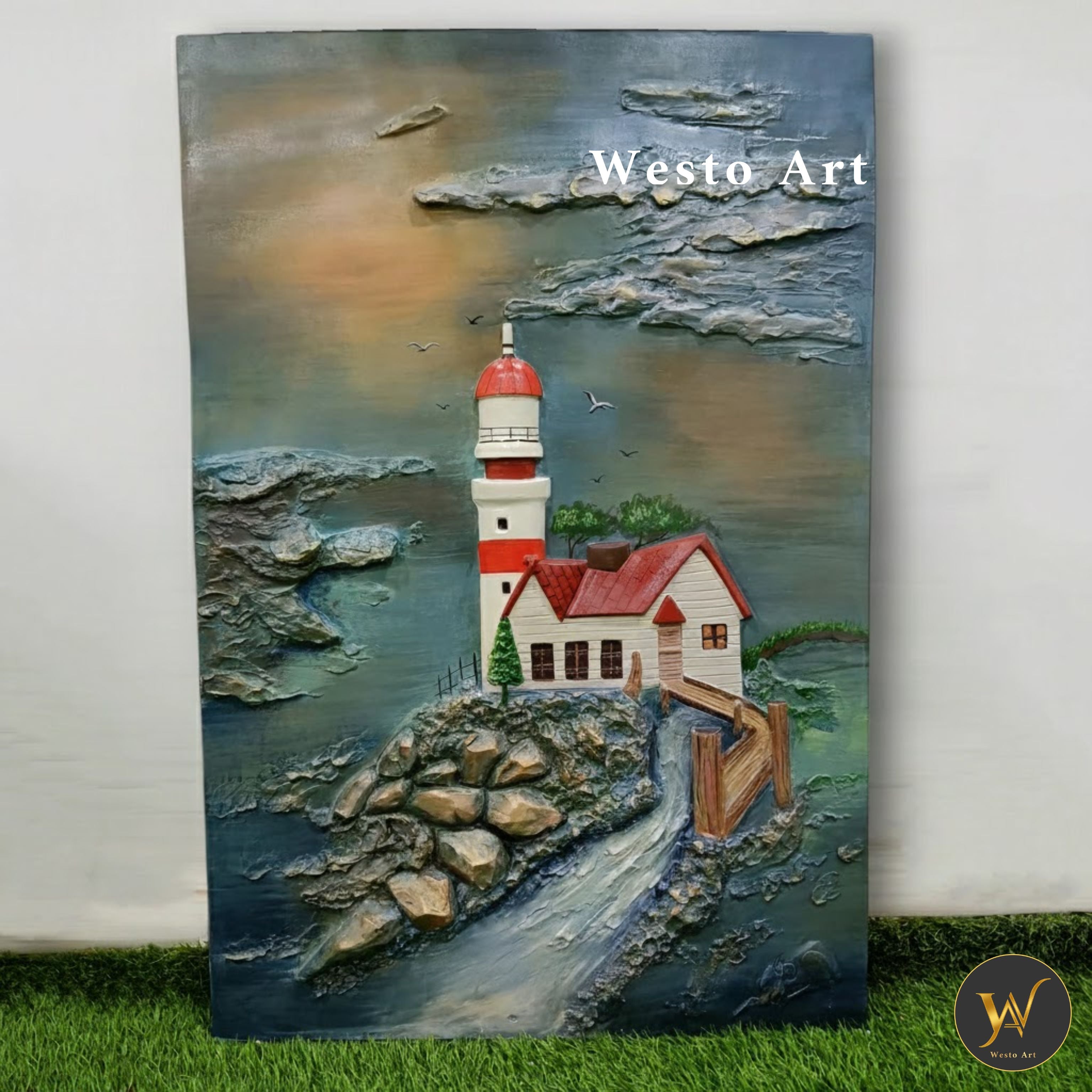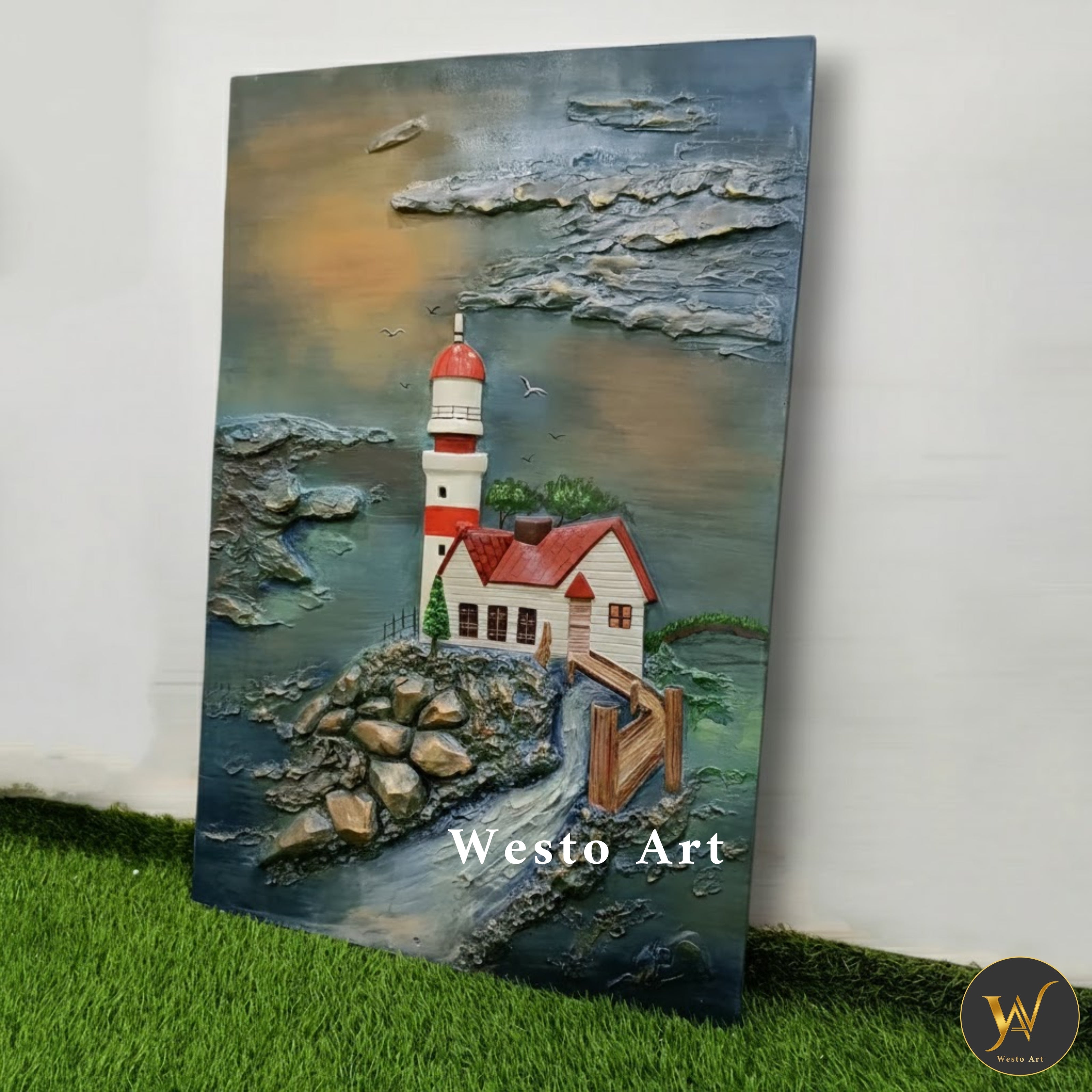 Lighthouse Coastal Wall Mural 3×2 ft | Calm Seaside Scene
