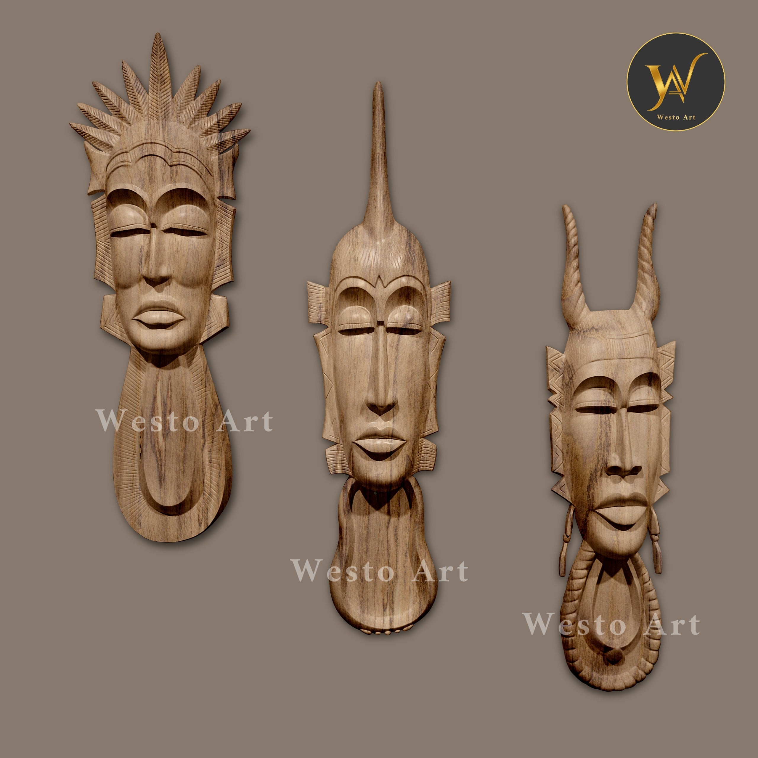 African Mask Wall Art – Set of 3 | Handcrafted Tribal Wall Hanging Décor