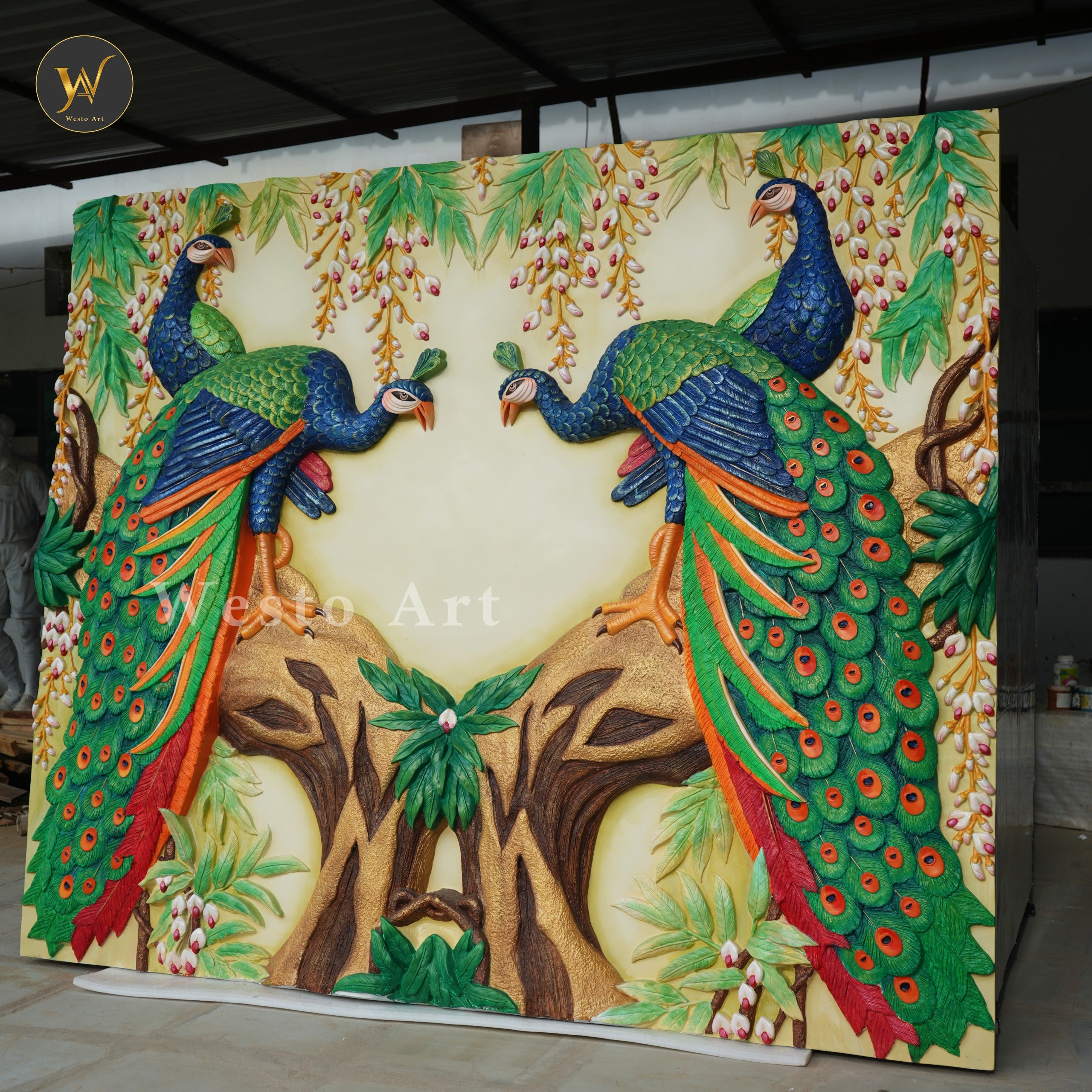 Peacock Wall Art Panel – 8.5x7 ft | Divine Handcrafted Statement Piece