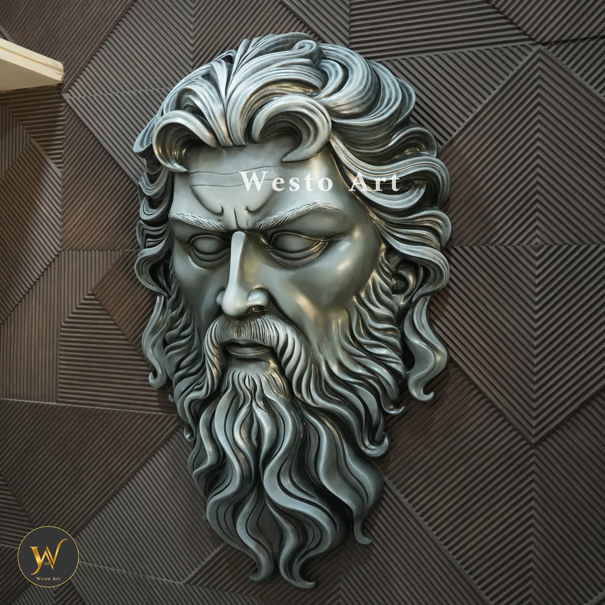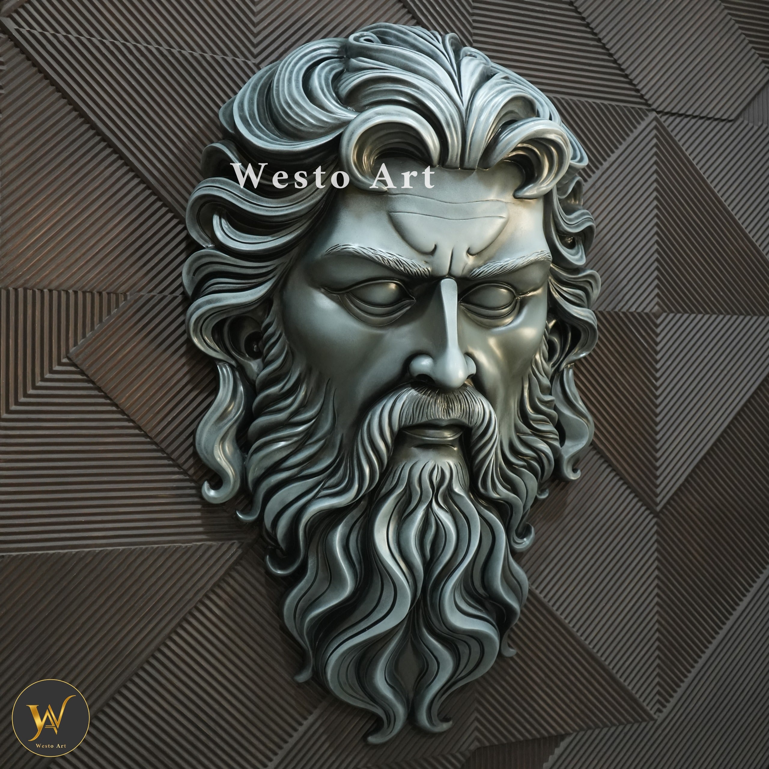 Greek God Zeus Face Wall Mural 5×3 ft | Powerful Mythological 3D Artwork