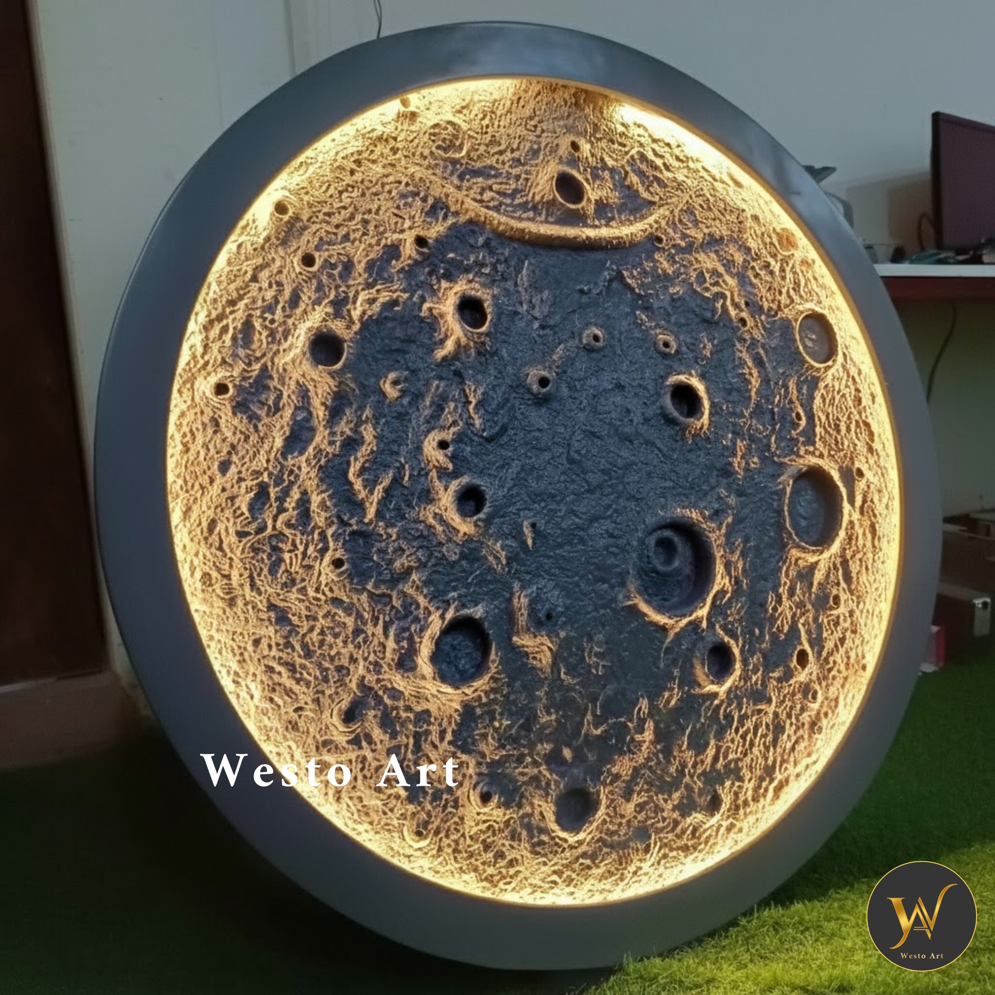 Moon Wall Mural with Backlight 3.5 ft | Realistic Lunar Texture Art