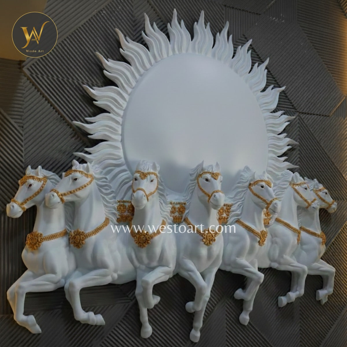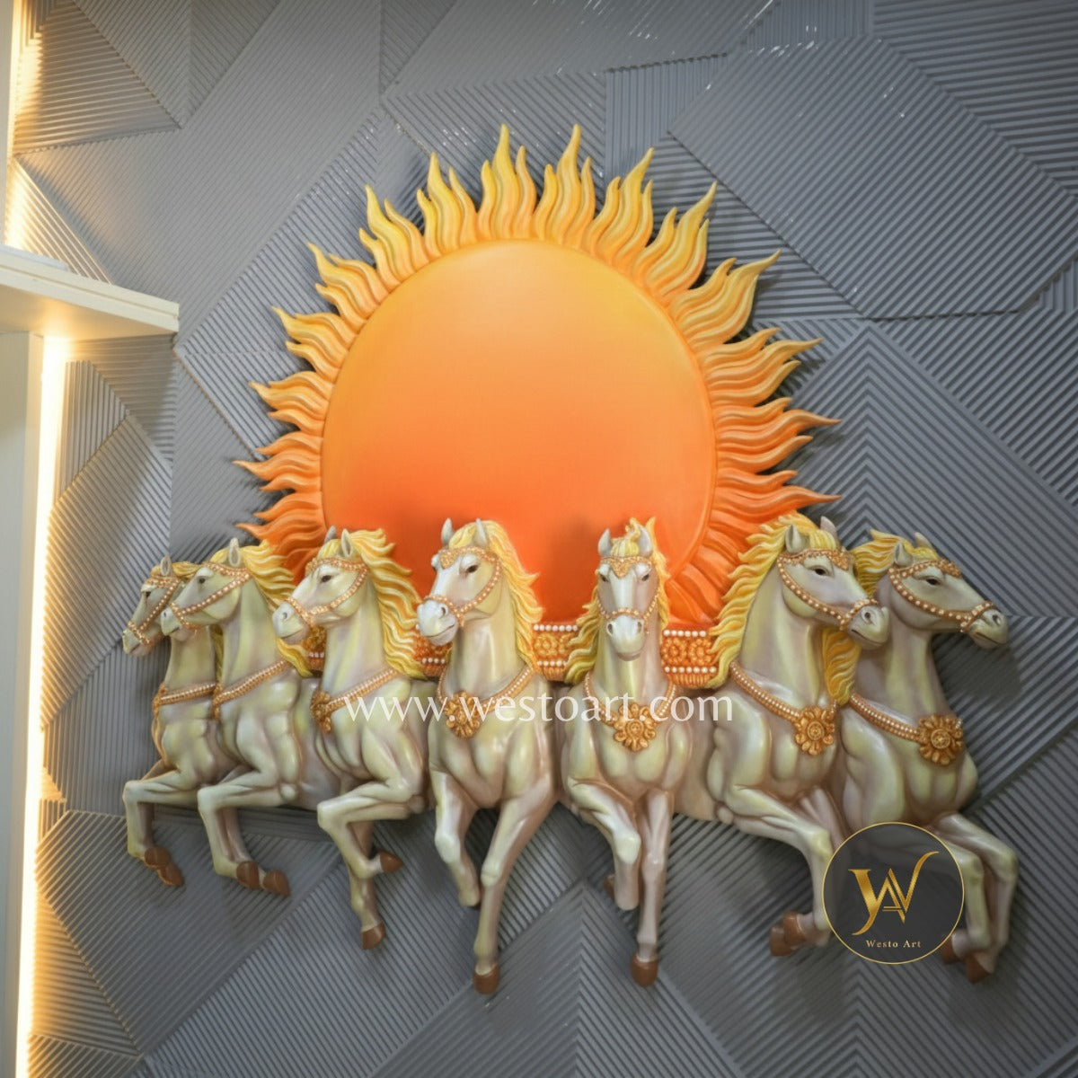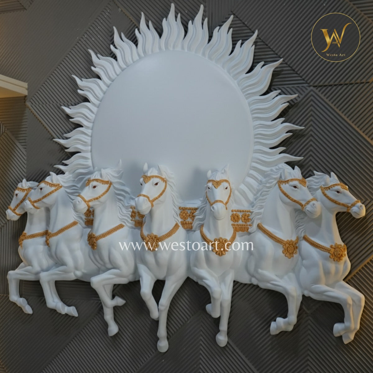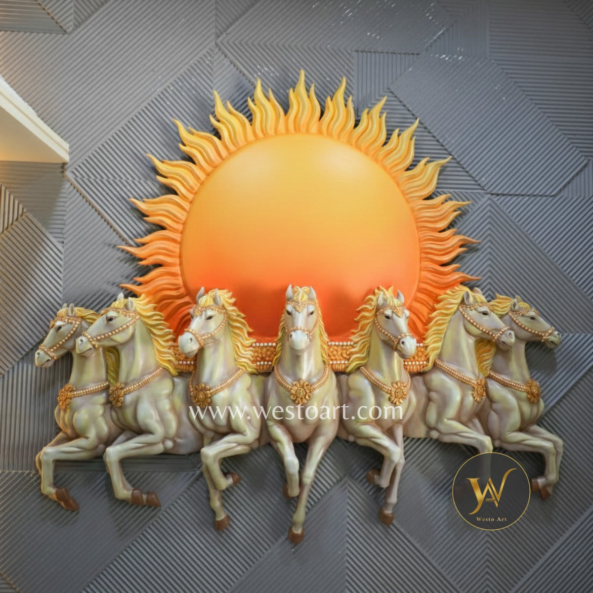 Seven Horses with Rising Sun Wall Mural 5.5×6 ft | Vastu Artwork for Home & Office