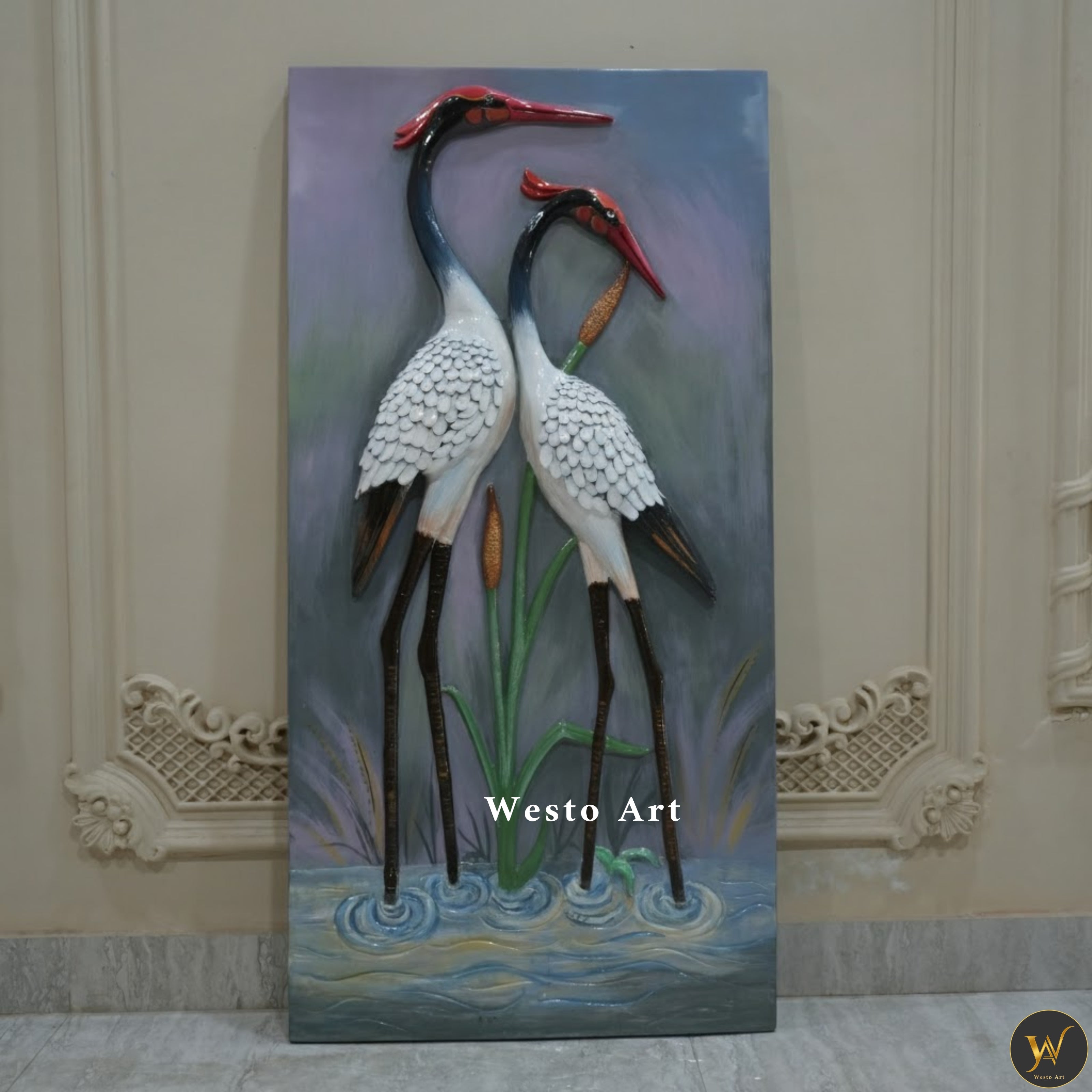Crane Wall Hanging Art 4×2 ft | Nature Inspired Decor