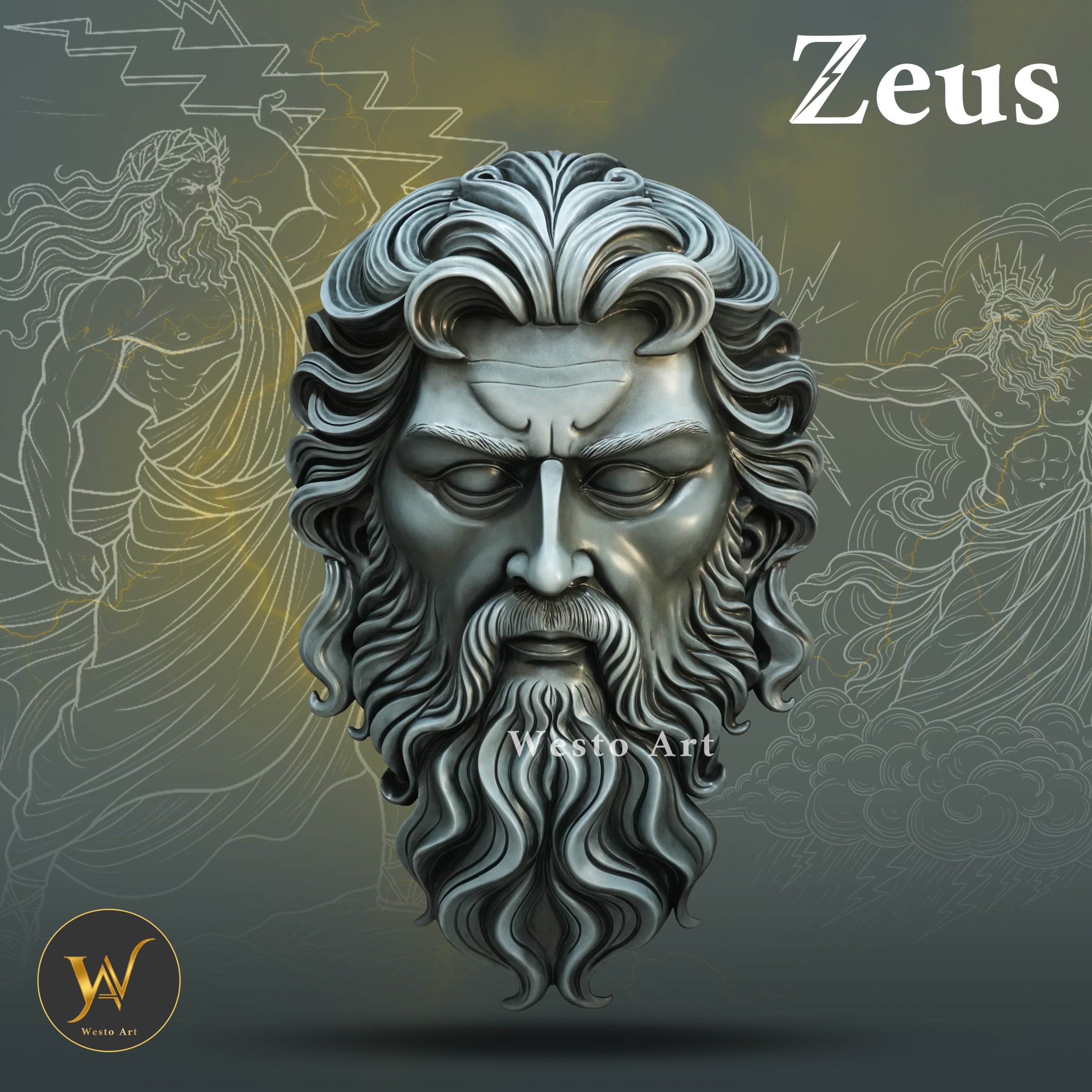 Greek God Zeus Face Wall Mural 5×3 ft | Powerful Mythological 3D Artwork