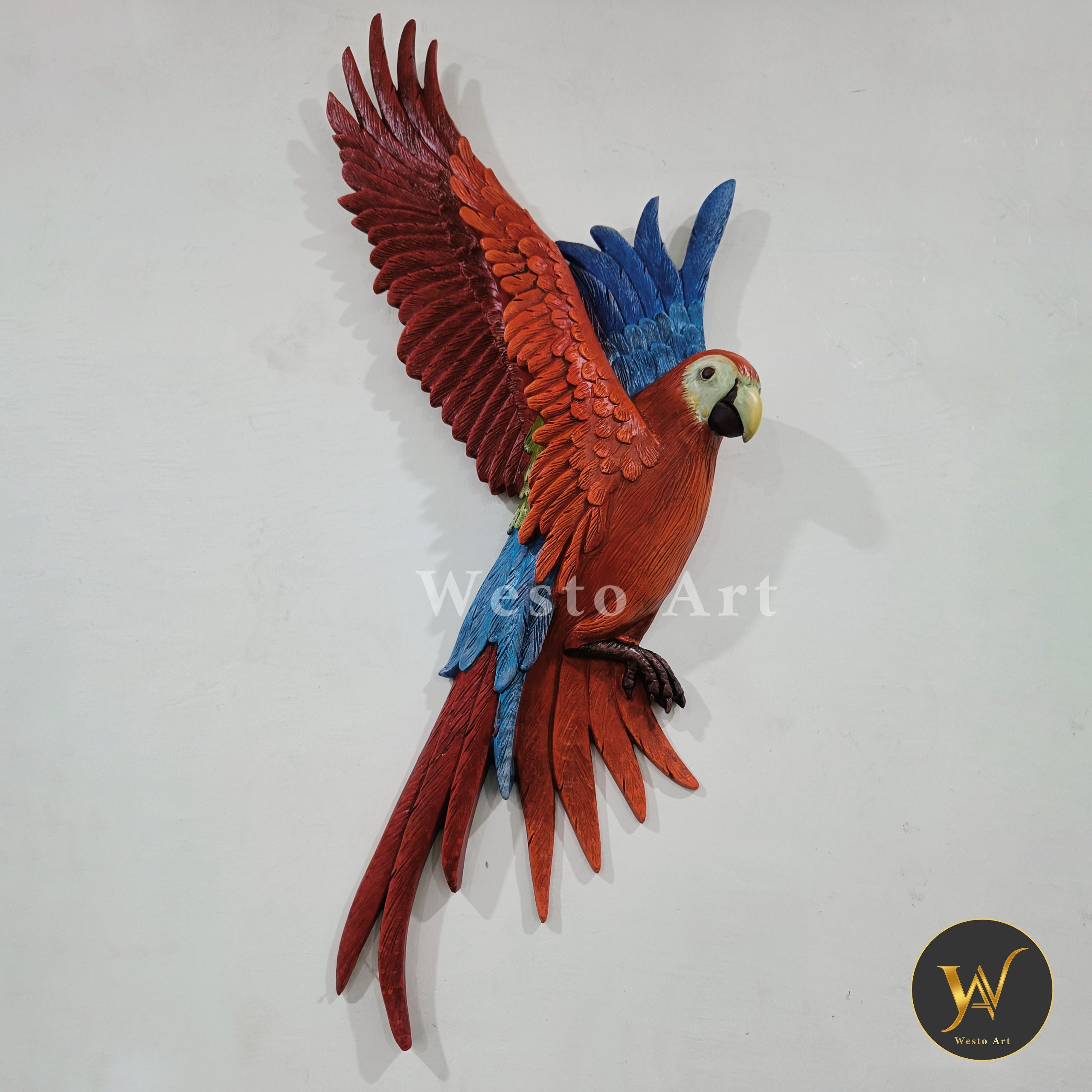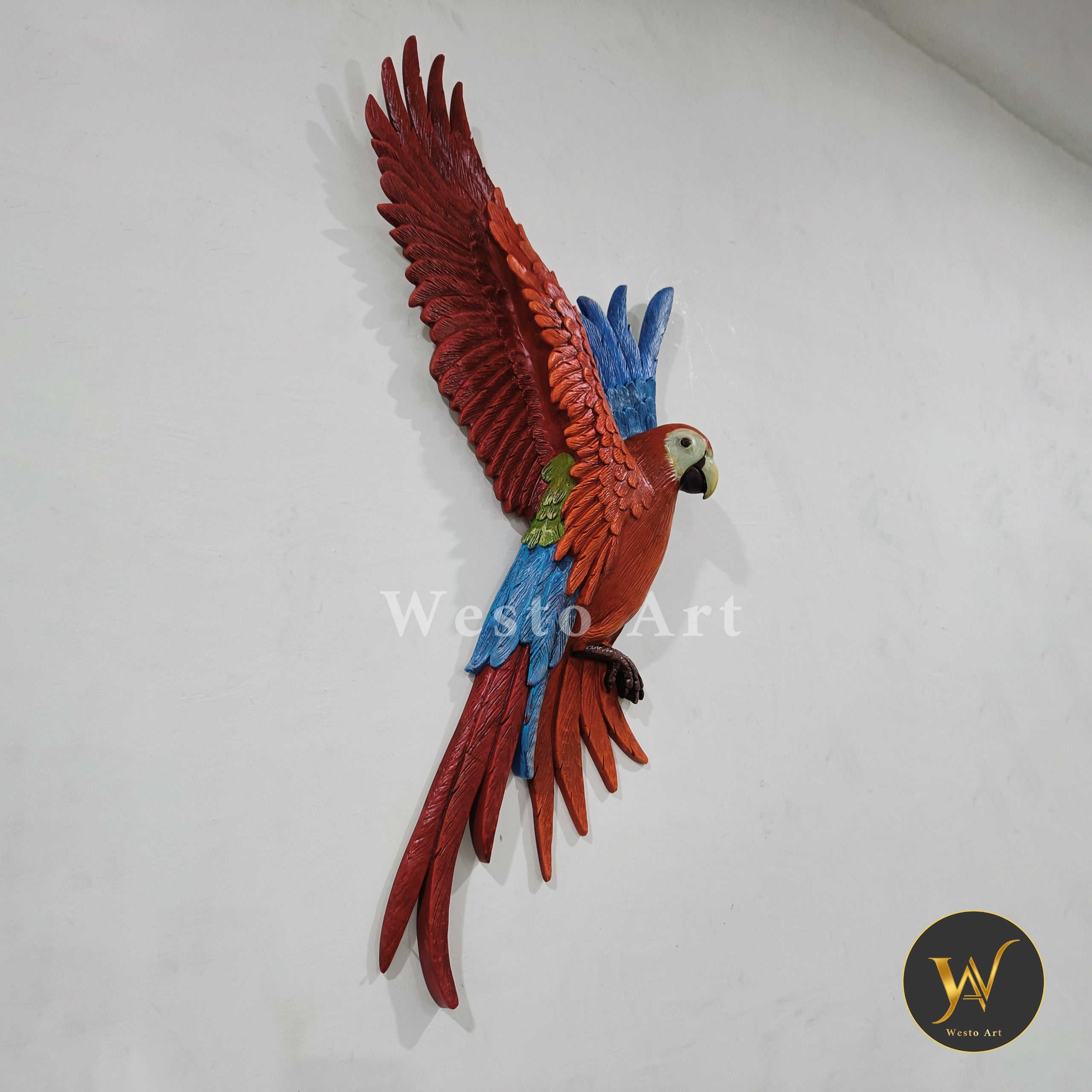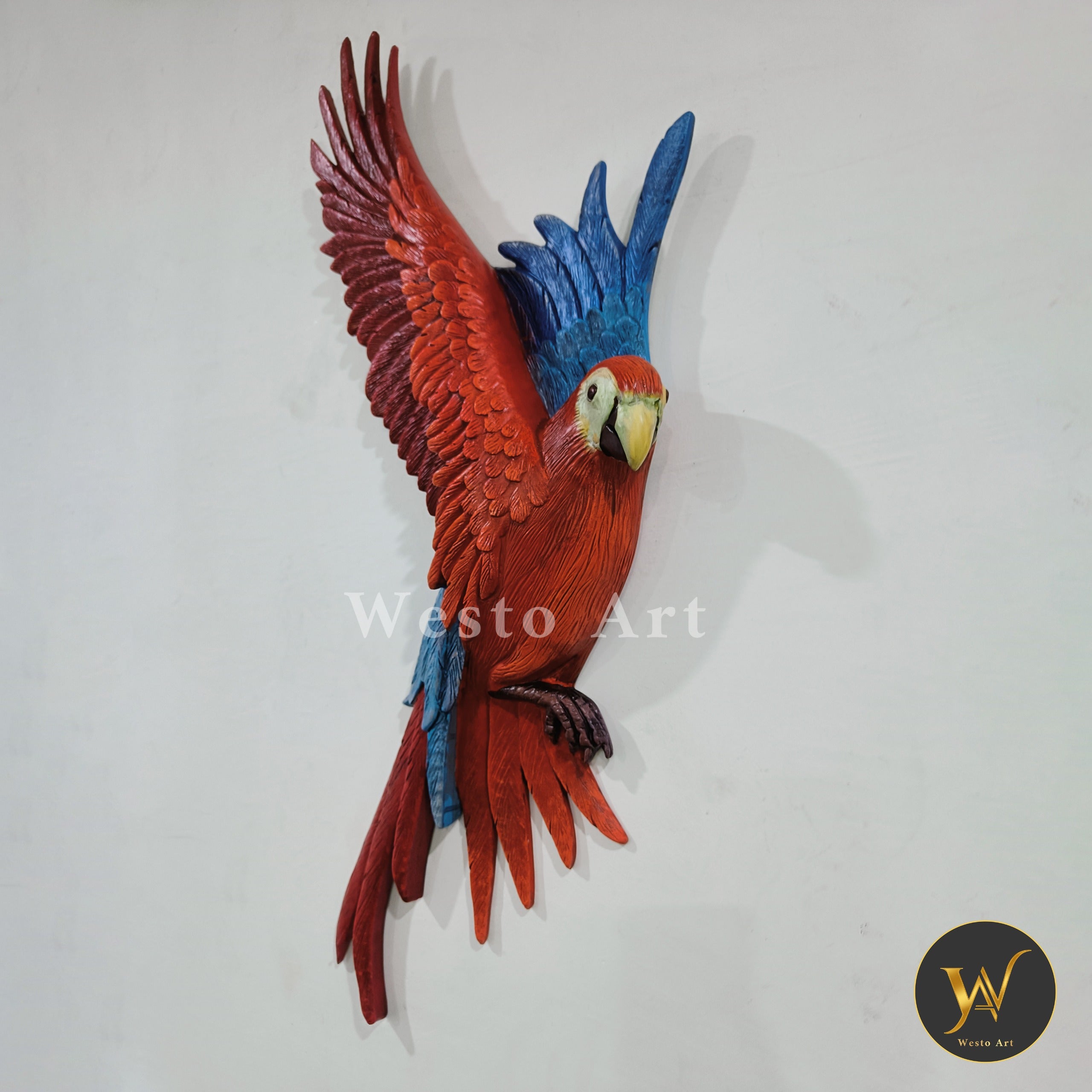 Handcrafted Parrot Wall Art – 3x1.5 ft | Exquisite Nature-Inspired Wall Hanging