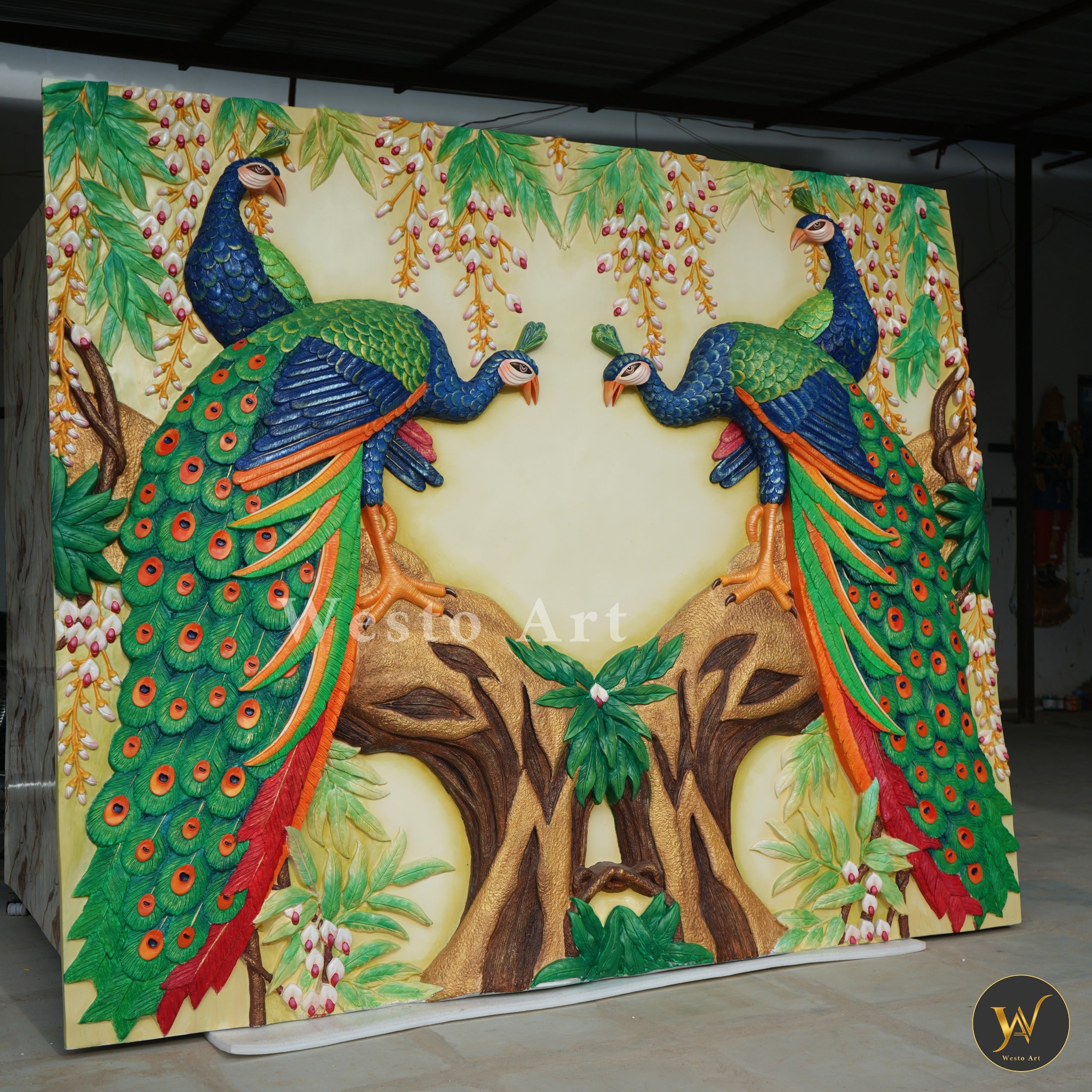 Peacock Wall Art Panel – 8.5x7 ft | Divine Handcrafted Statement Piece